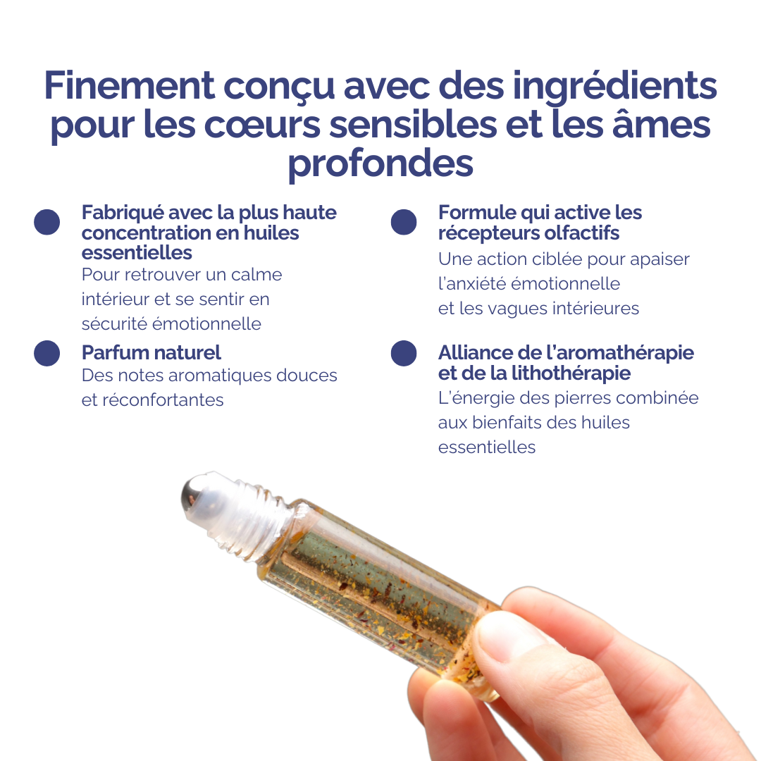 Appliquez le roll-on sur les poignets, derrière les oreilles ou sur le chakra du cœur. Prenez un instant pour respirer profondément et laisser la fragrance agir, en ressentant l’apaisement et l’énergie équilibrante. À utiliser au quotidien ou dès que vous souhaitez calmer l’esprit.
